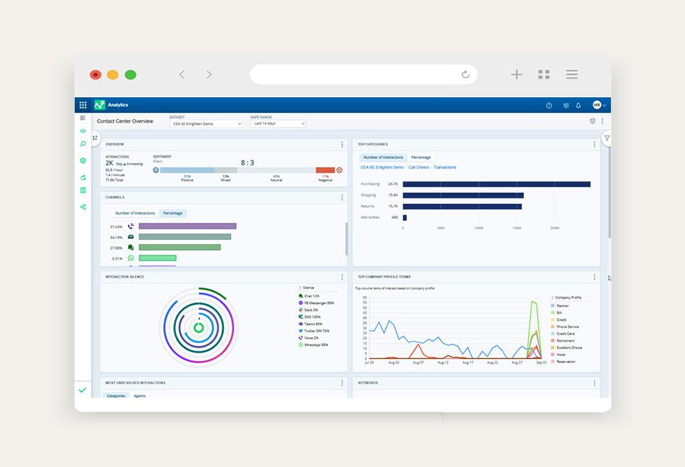 NiCE Interaction Analytics turns every interaction into actionable insights, helping you drive smarter decisions, elevate coaching, and deliver better CX.Download brochure Take the tourReveal what customers feel