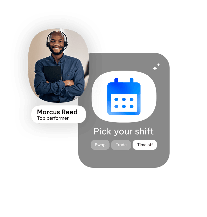 Enable agents to manage their schedules with self-service tools for shift trades, time-off, extra hours, and KPI visibility.