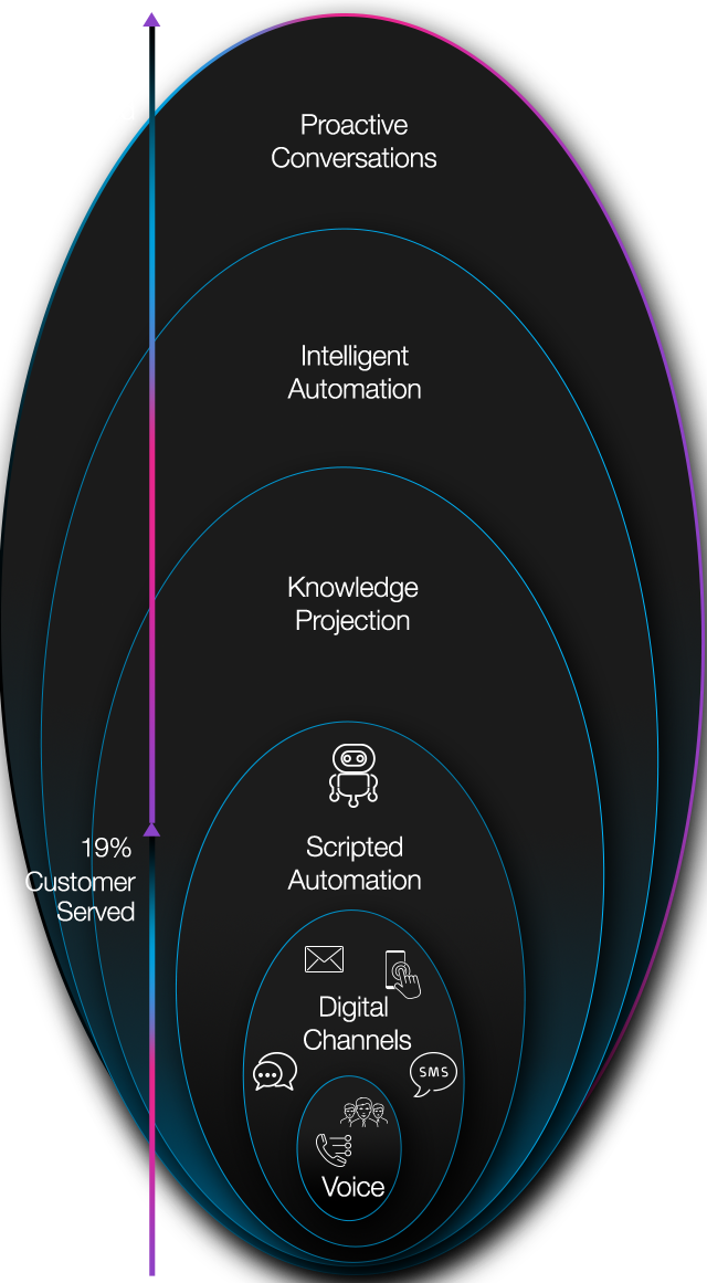Is about creating end-to-end digitally fluent customer experiences, from proactively guiding customers at the beginning of their needs event, through a re-invention of your brand’s digital doorstep where your customers’ journey really begins, and delighting customers from smart self-service all the way to hyper-personalized interactions with a fully prepared agent.